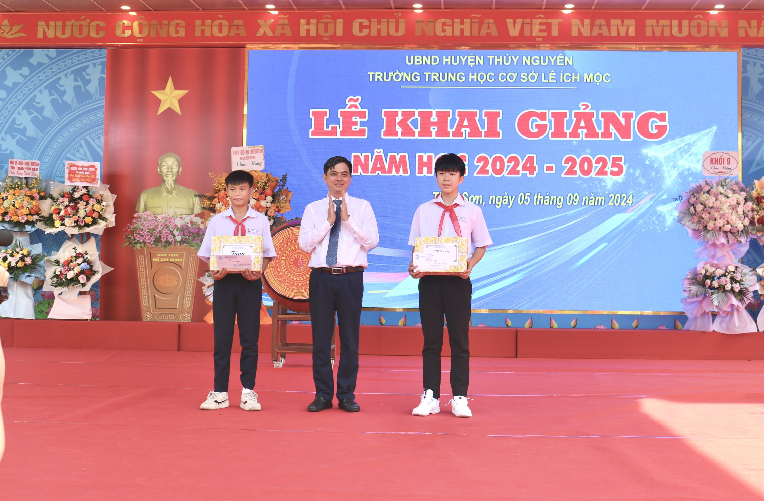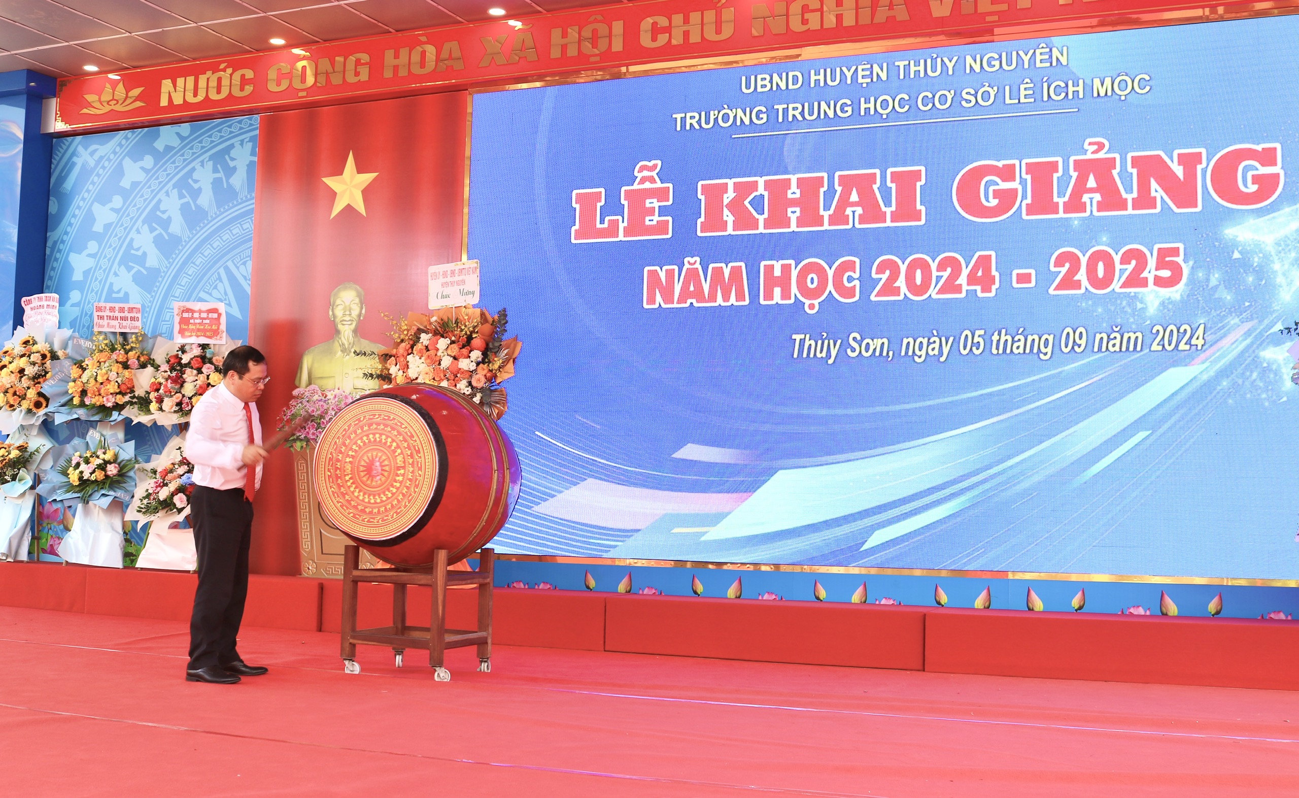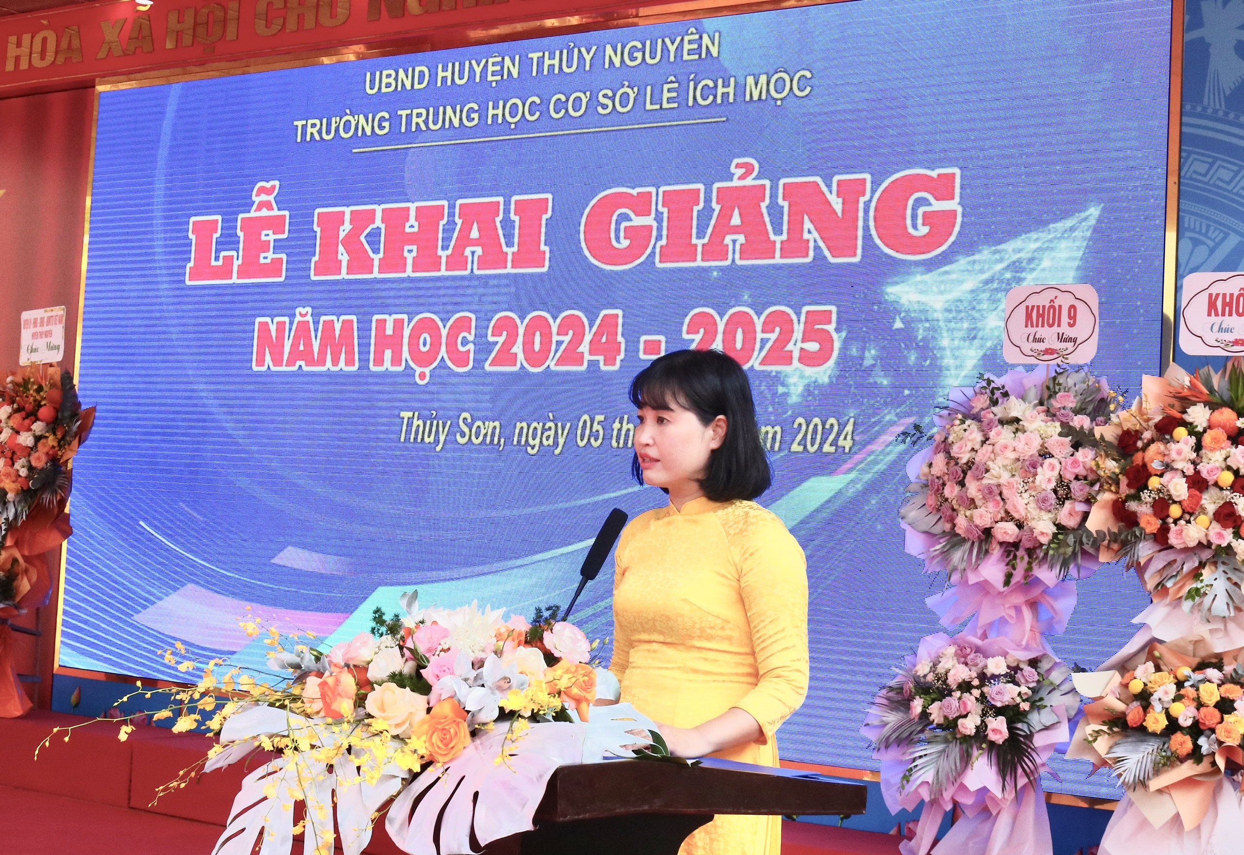 Quang cảnh Lễ khai giảng tại trường THCS Lê Ích Mộc